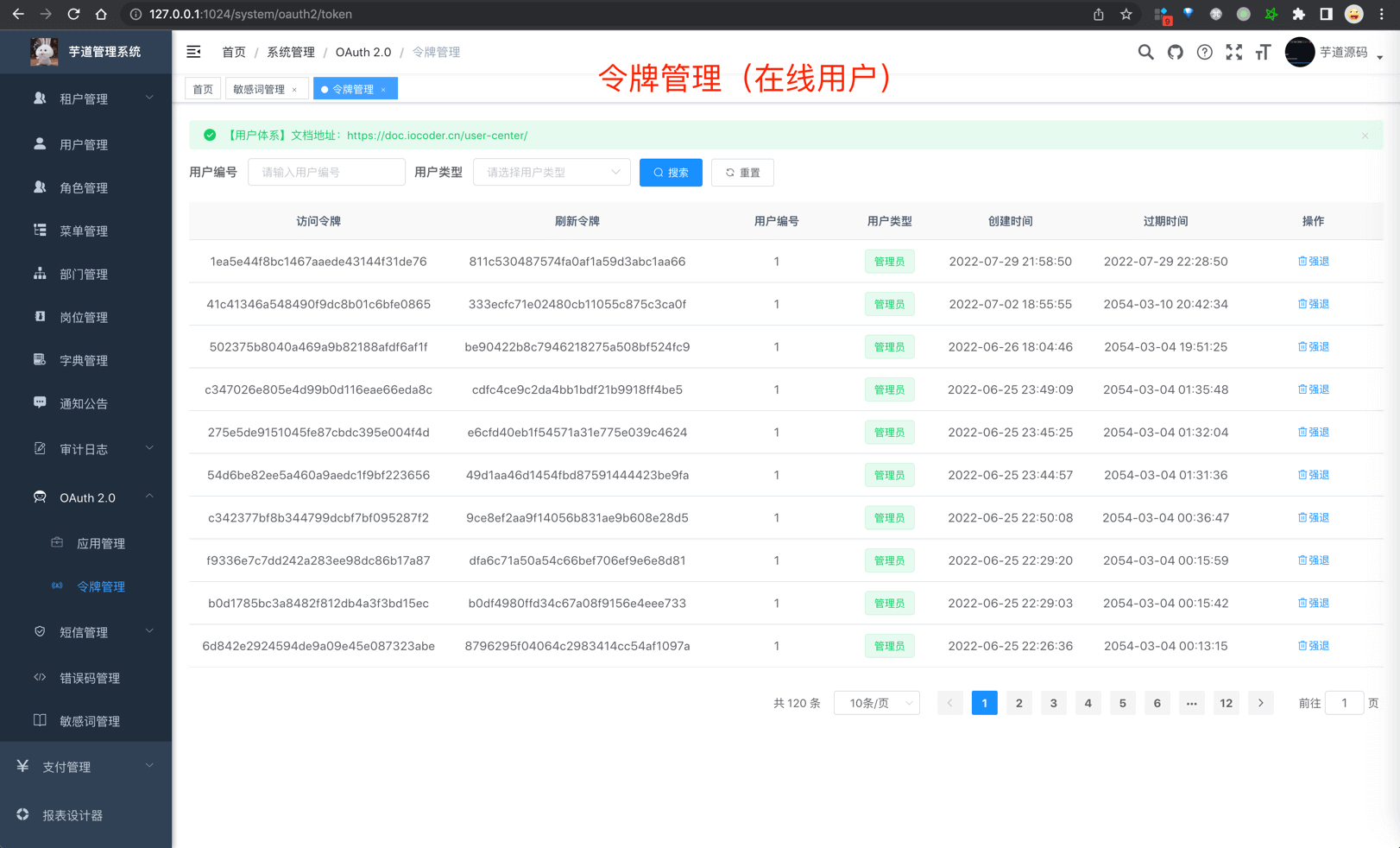 在线用户 当前系统中活跃用户状态监控,支持手动踢下线