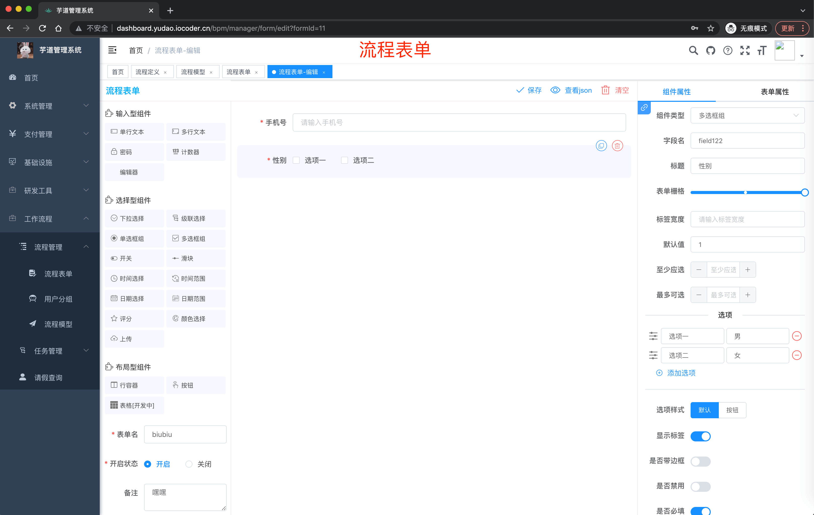 表单 & 分组 流程表单 用户分组 -