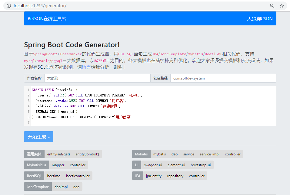 https://github.com/moshowgame/SpringBootCodeGenerator.git