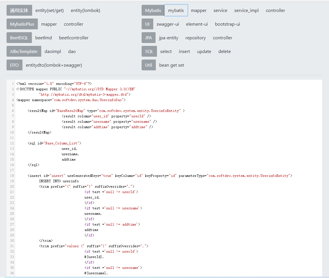 1.添加tinyint类型转换(感谢@lixiliang&@liujiansgit的Suggestion) 2.添加一键复制功能(感谢@gaohanghang的Suggestion) 3.Mybatis的insert增加keyProperty="id"用于返回自增id(感谢@88888888888888888888的Suggestion) 4.优化date类型的支持(感谢@SteveLsf的反馈) 5.其他一些优化. |