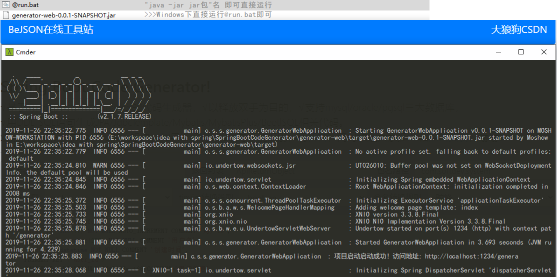 | 最新Jar包 | https://github.com/moshowgame/SpringBootCodeGenerator/releases |