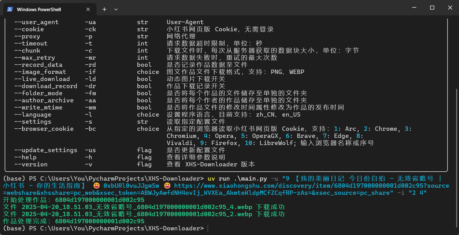 项目支持命令行运行模式,若想要下载图文作品的部分图片,可以使用此模式设置需要下载的图片序号!