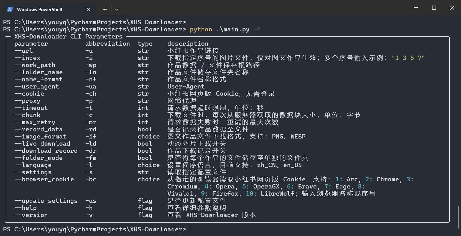 命令示例:python .\main.py --browser_cookie Chrome --update_settings