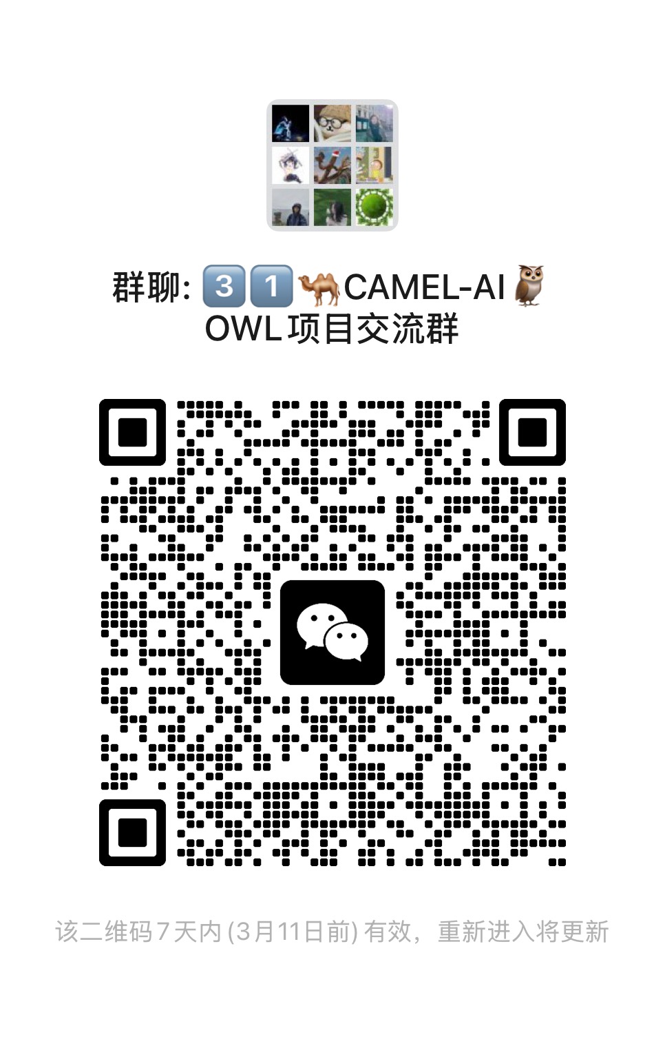 Note for GAIA Benchmark Users: When running the GAIA benchmark evaluation, please use the gaia58.18 branch which includes a customized version of the CAMEL framework in the owl/camel directory. This version contains enhanced toolkits with improved stability specifically optimized for the GAIA benchmark compared to the standard CAMEL installation.